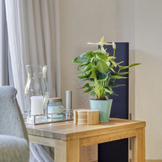- Volledig geïsoleerd (vloer, dak, gevel en isolerende beglazing)