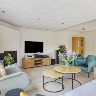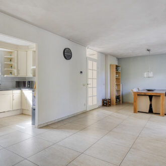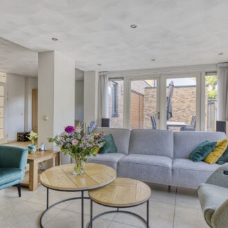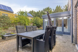 De woning is aan de achterzijde uitgebouwd, wat zorgt voor extra leefruimte, en is met zorg onderhouden. De gashaard en de plavuizenvloer met vloerverwarming geven het huis een comfortabele en sfeervolle uitstraling – een plek waar je je direct thuis voelt.