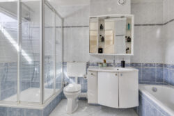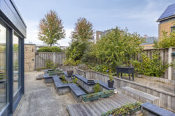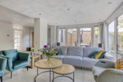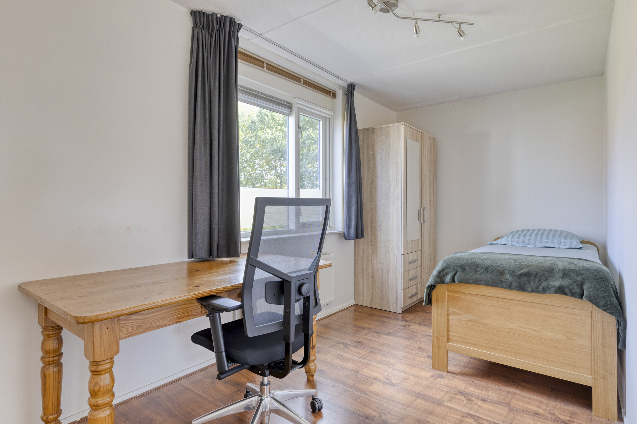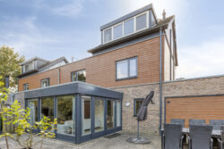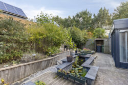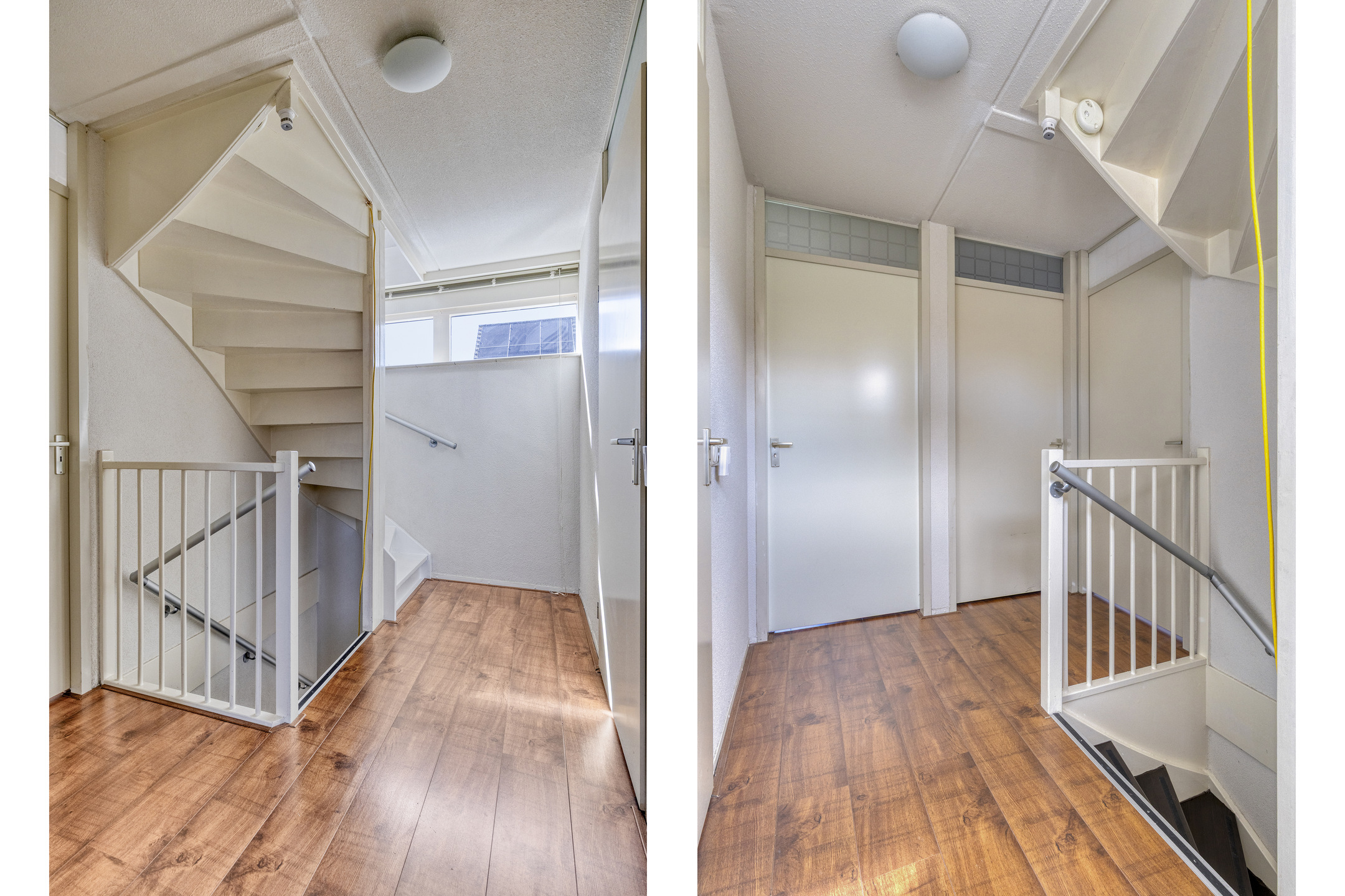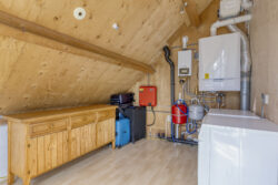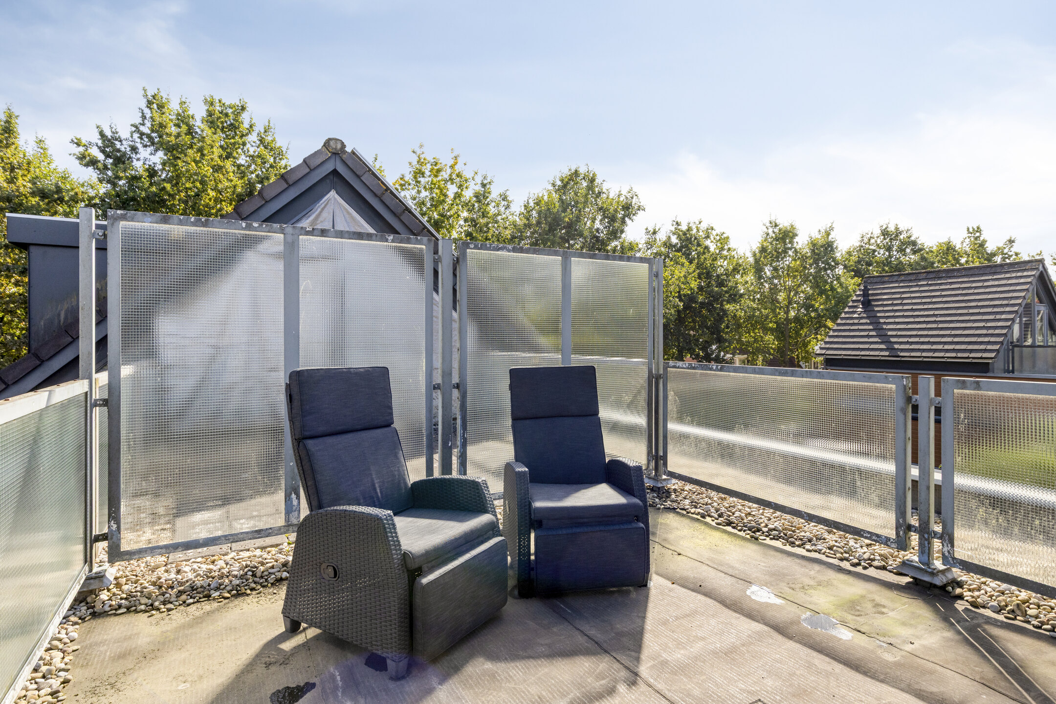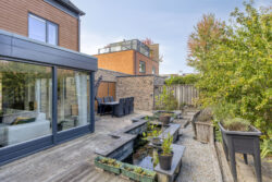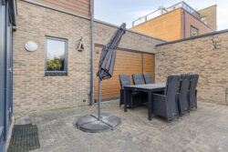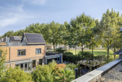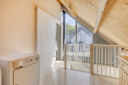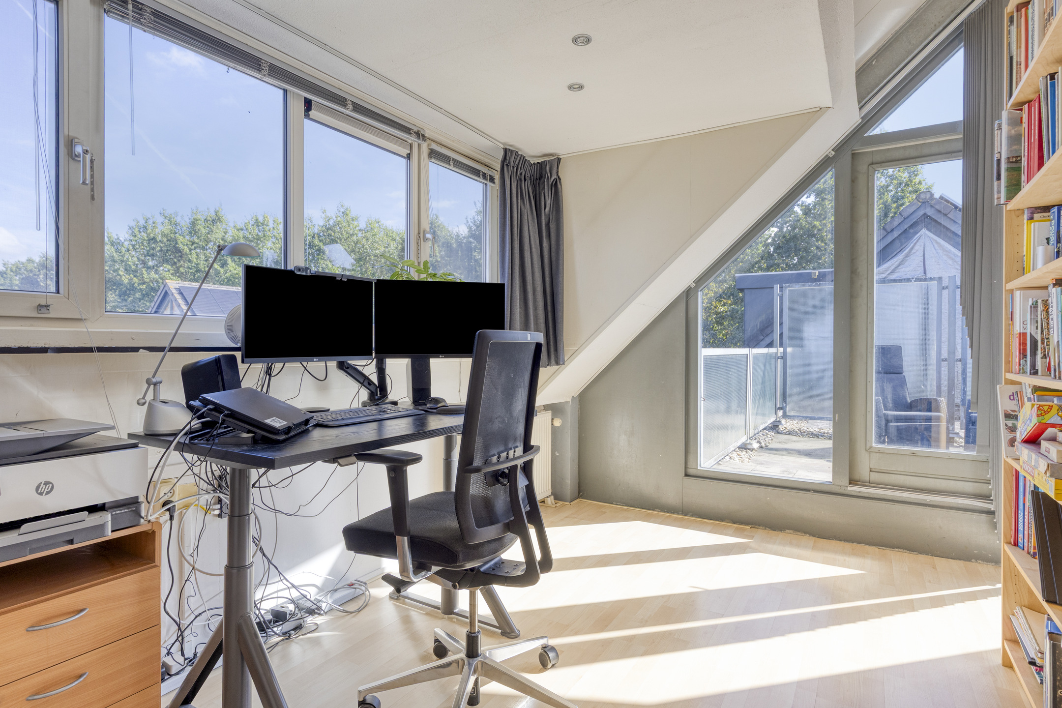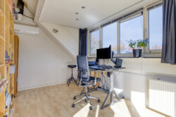 Tweede verdieping: Via een vaste trap bereik je de zolderverdieping met een royale voorzolder waar zich de aansluitingen voor de was- en droogapparatuur bevinden, evenals de CV-installatie en de hybride warmtepomp. Hier bevindt zich tevens een grote vierde slaapkamer met veel lichtinval. Aan de achterzijde geeft een glazen pui met loopdeur toegang tot het zonnige dakterras op het zuidwesten – een heerlijke plek om te ontspannen en te genieten van het vrije uitzicht.