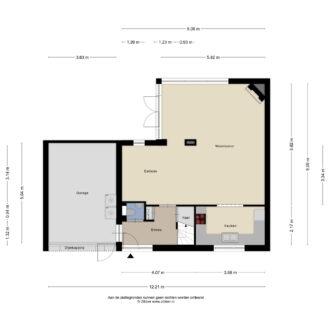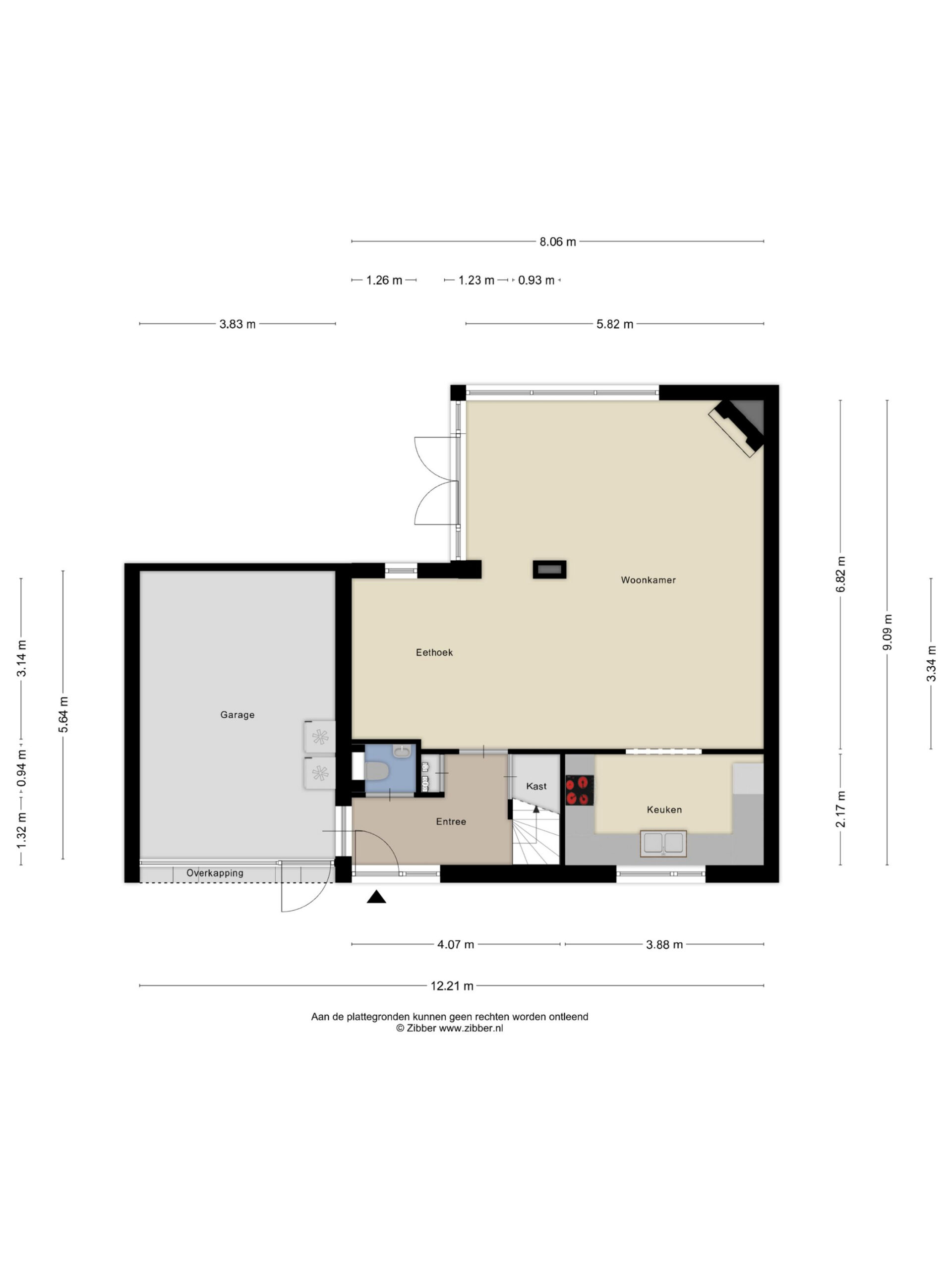 De aangebouwde stenen garage is zowel van binnenuit als buitenaf bereikbaar en beschikt over een eigen oprit met carport – praktisch en ruim opgezet.