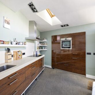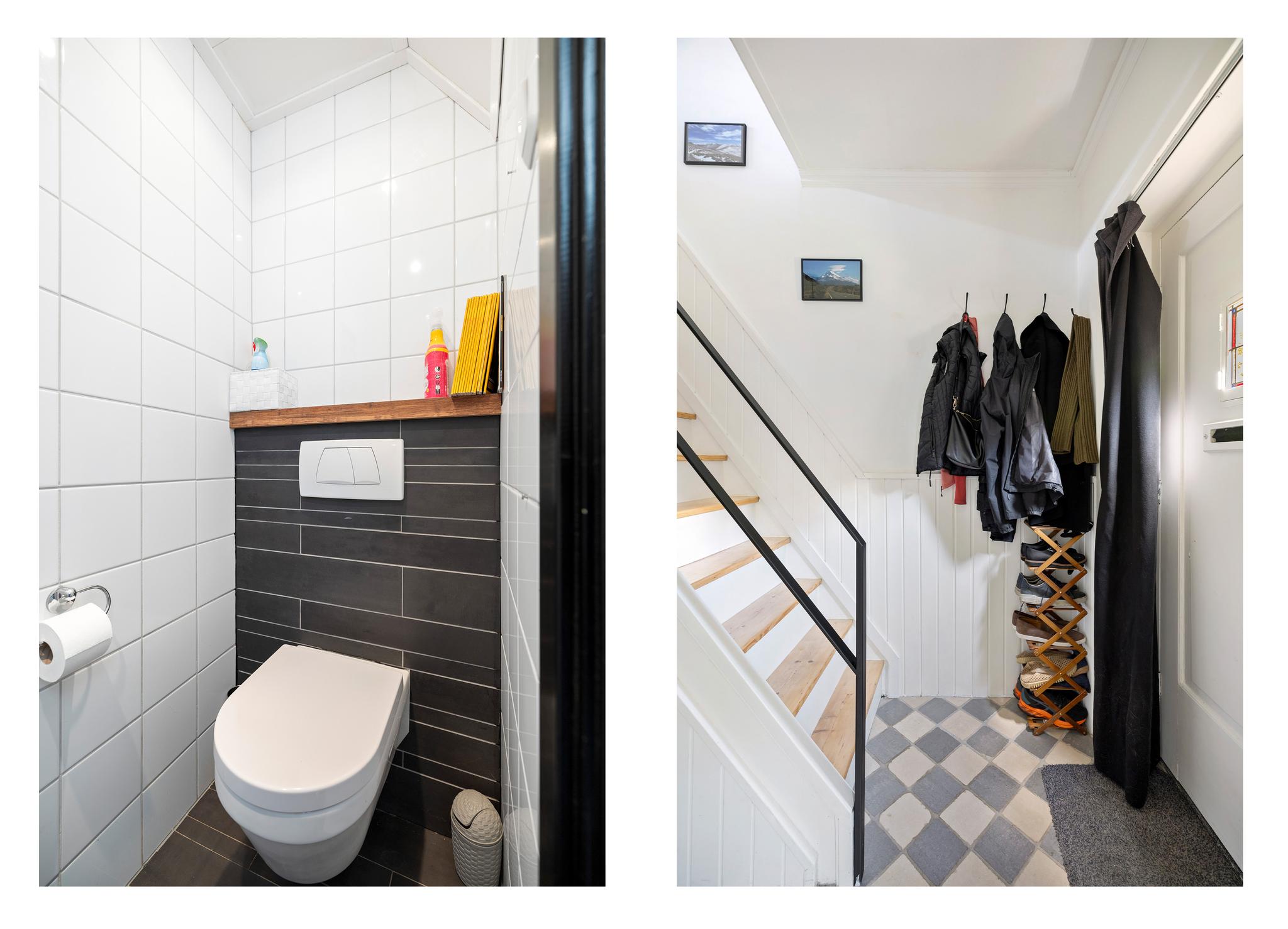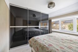 Op de eerste verdieping leidt de overloop naar twee comfortabele slaapkamers en een ruime, compleet uitgeruste badkamer. Hier vind je een ligbad, aparte douche, dubbele wastafels, een tweede hangcloset en een designradiator. De slaapkamer aan de voorzijde beschikt over een extra ruimte met een vaste trap naar de tweede verdieping.