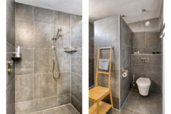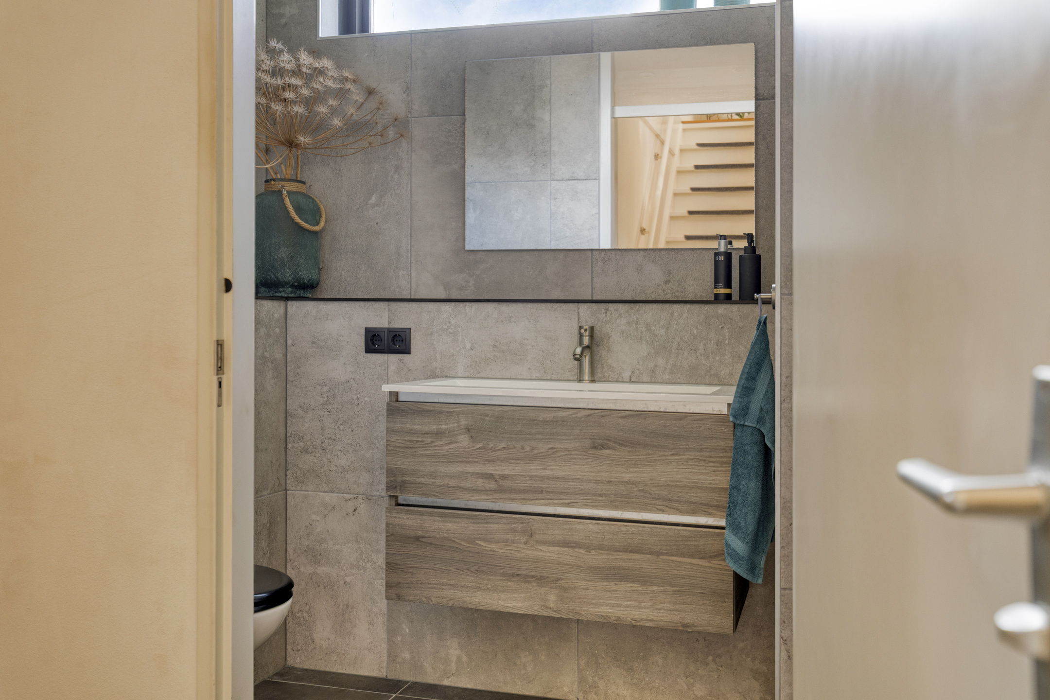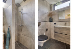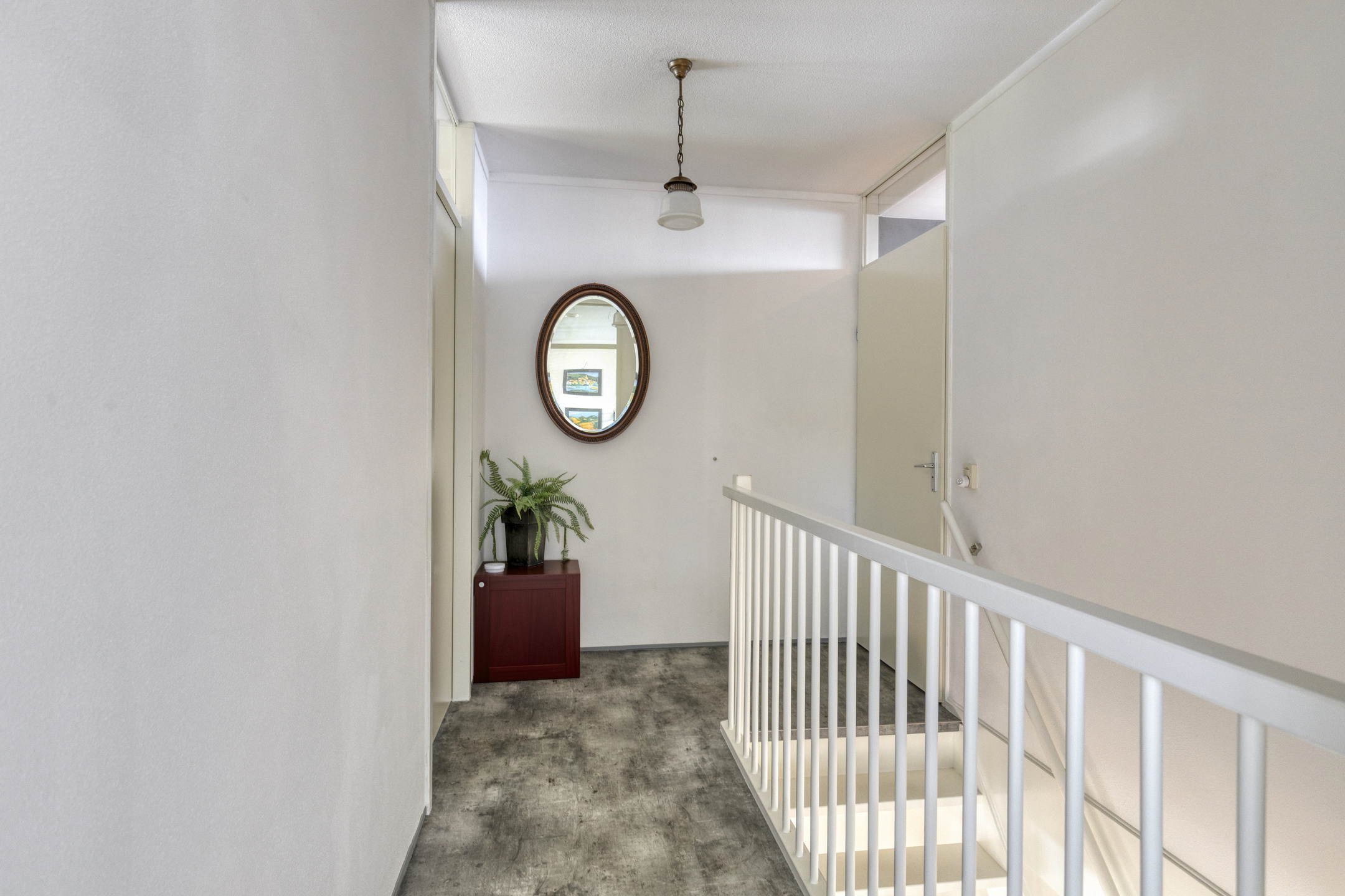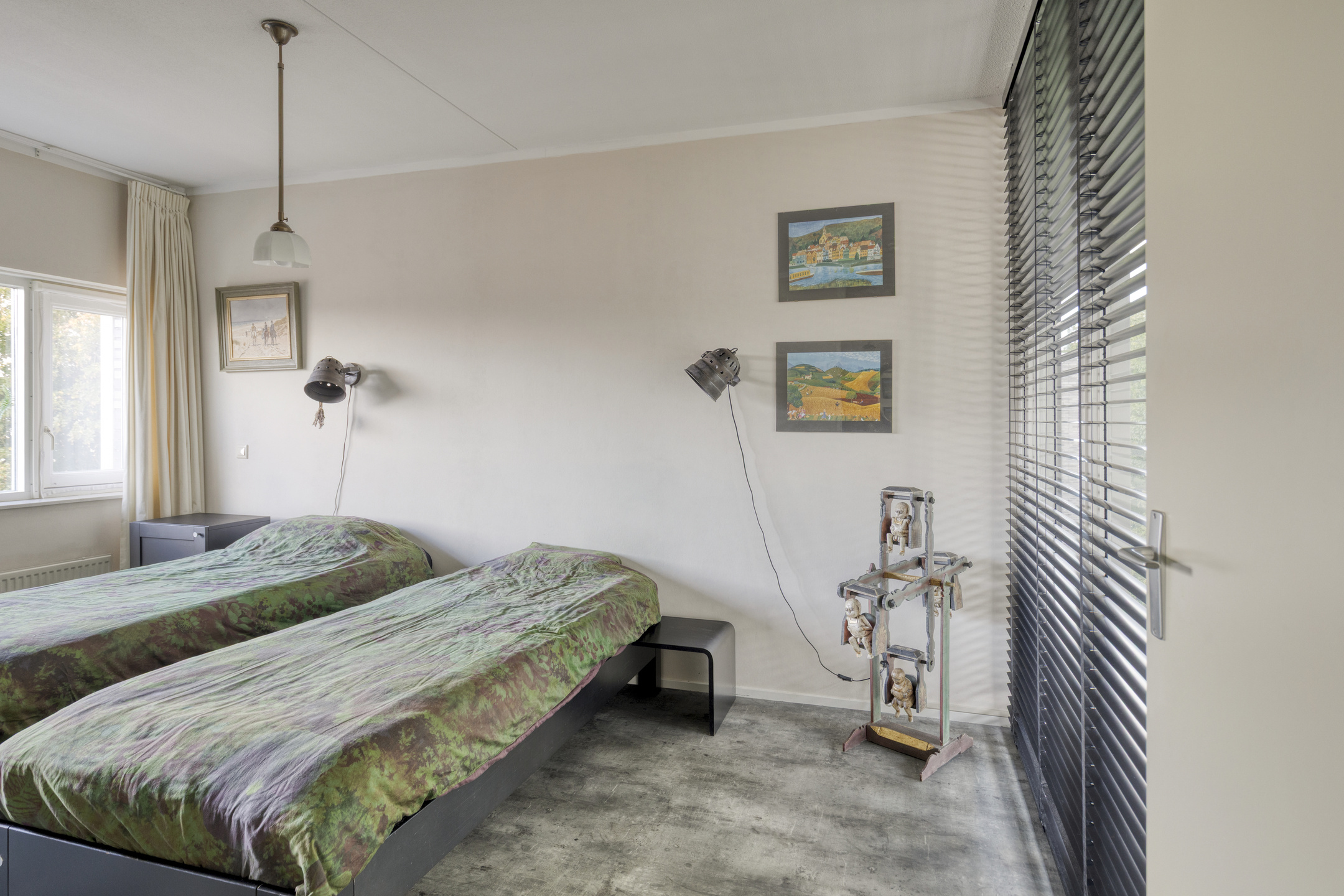 Entree met meterkast en toegang tot bergruimte. Hal met trapopgang en toegang tot de vertrekken op deze verdieping. Hier bevinden zich twee ruime slaap-/werkkamers, beide voorzien van een laminaatvloer en een deur naar het zonnige terras met fraai uitzicht. Badkamer met inloopdouche, toilet en wastafelmeubel. Deze verdieping biedt volop mogelijkheden voor gelijkvloers wonen of een combinatie van wonen en werken. Verder is er een ruime inpandige berging/bijkeuken met opstelplaats voor wasapparatuur, CV-ketel en WTW-unit.