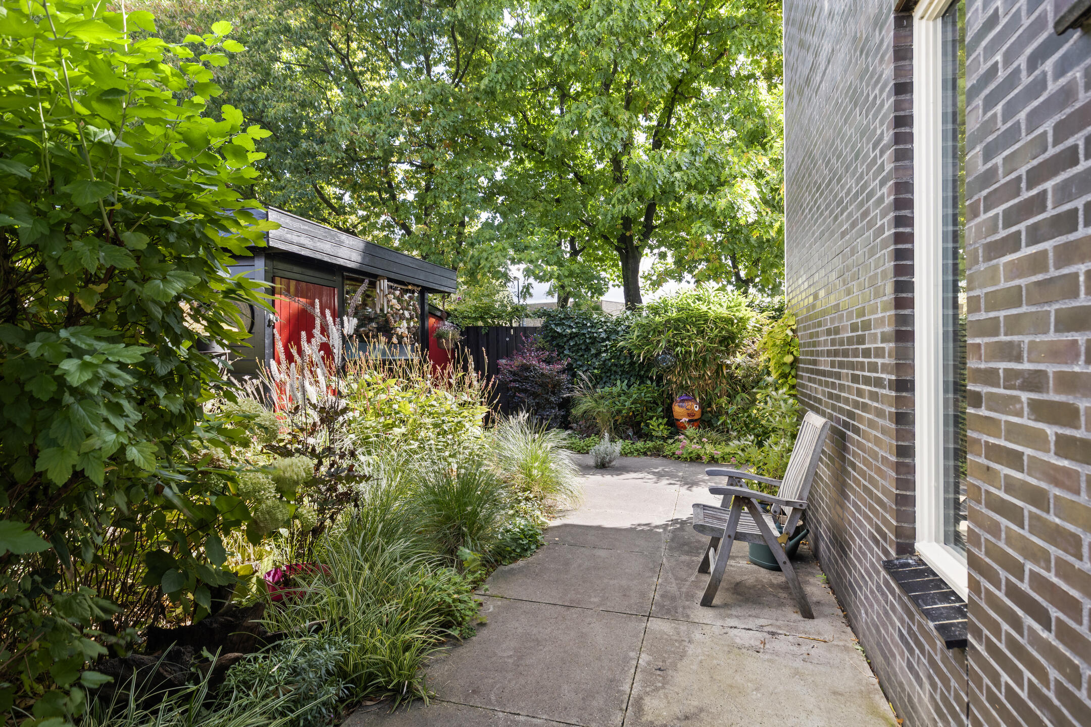 De tuin rondom biedt volop privacy en een directe verbinding met de groene en parkachtige omgeving. Aan de waterzijde kunt u genieten van het uitzicht en de rust en er is ook een houten berging aanwezig. Ook zijn er twee eigen parkeerplaatsen.