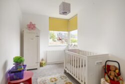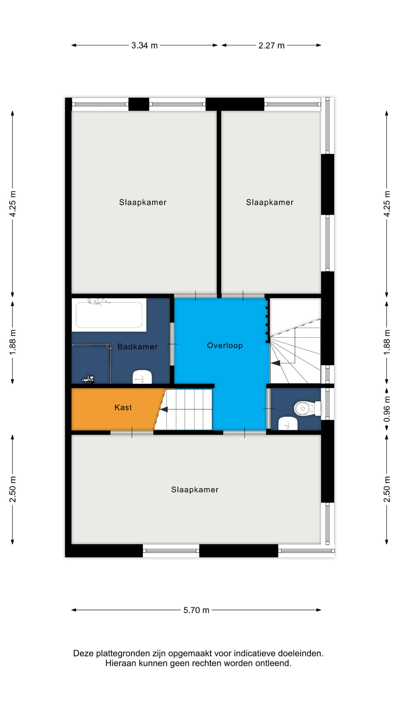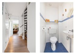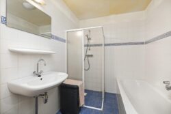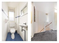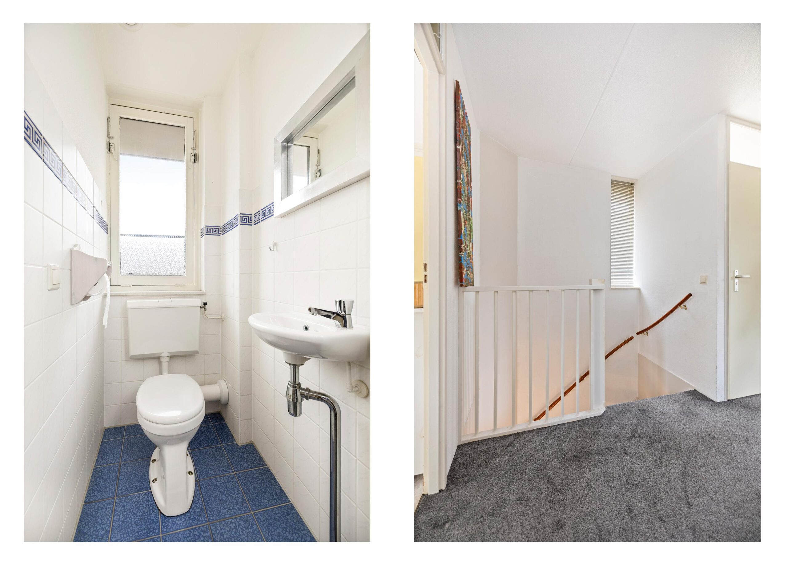 De royale overloop geeft toegang tot een tweede, separaat toilet, drie ruime slaapkamers – waarvan één met een praktische vaste kast. De eenvoudige badkamer is uitgevoerd met een ligbad, douchecabine en wastafel.