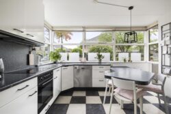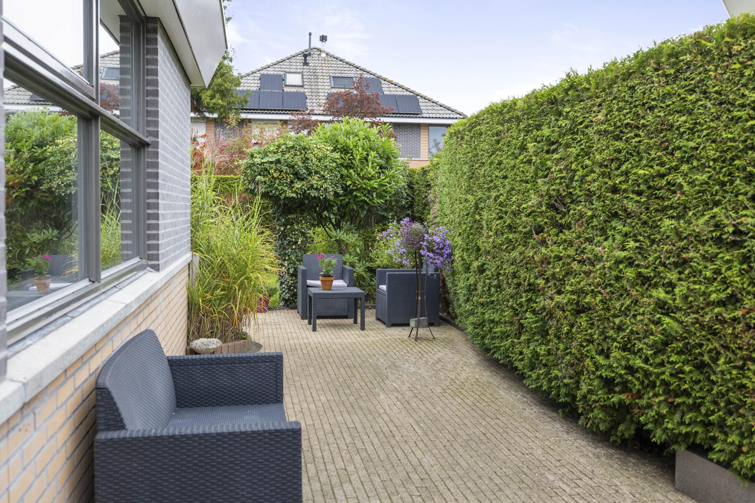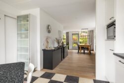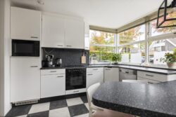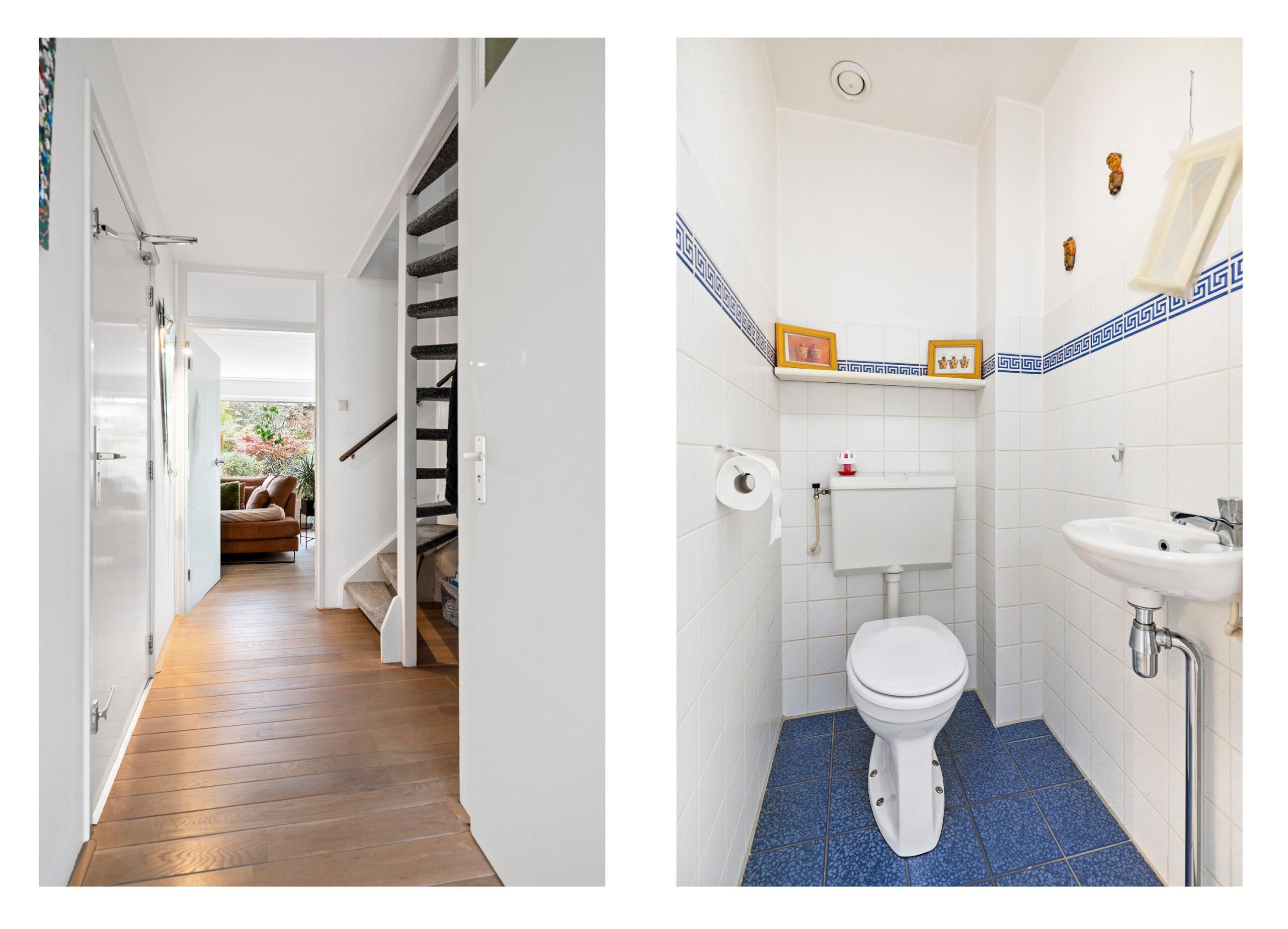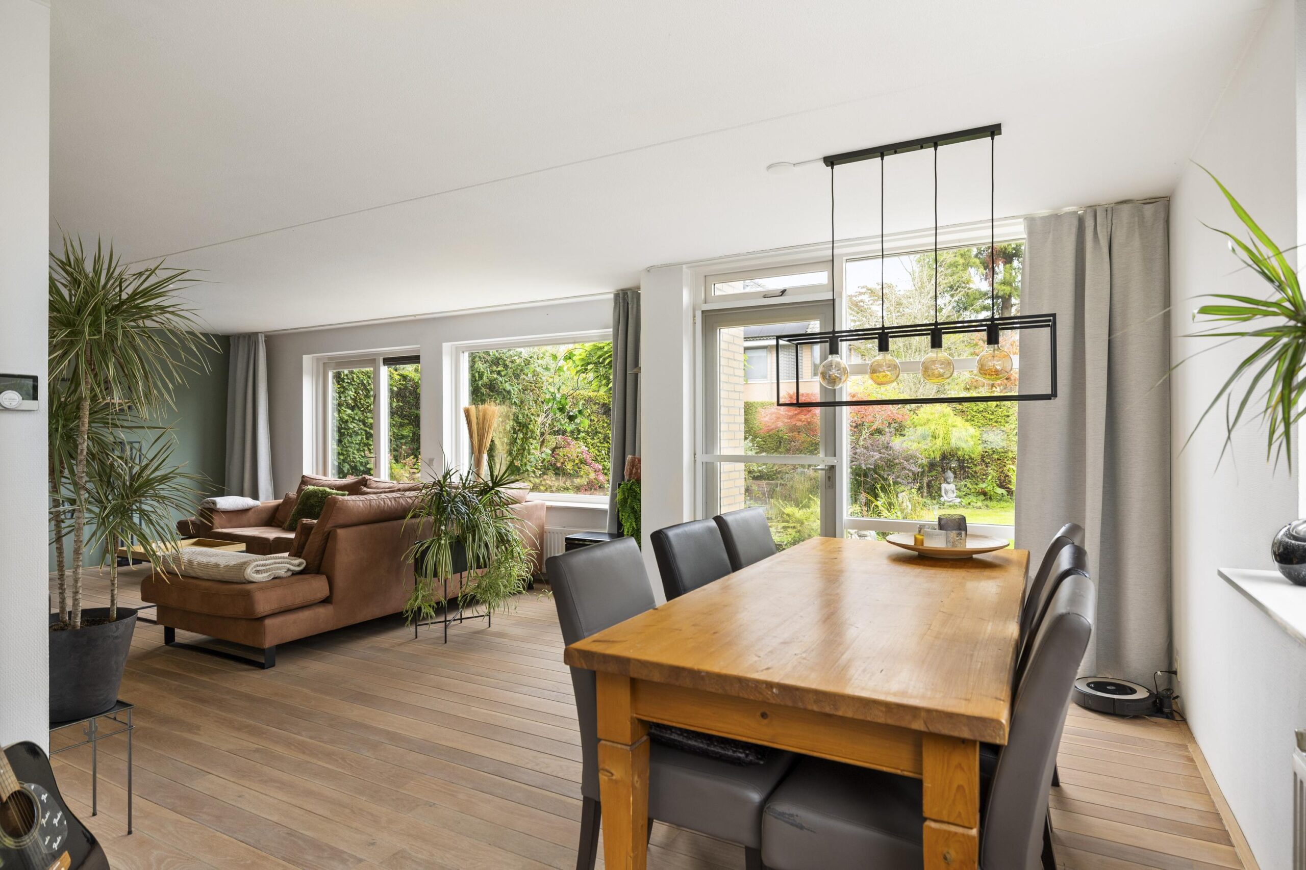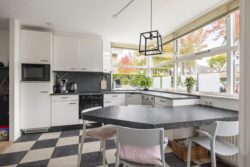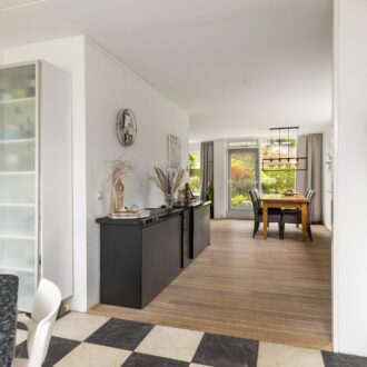 Via de entree bereik je de meterkast, het toilet met fontein, de trapopgang én de inpandige garage. De ruime, L-vormige woonkamer voelt licht en open dankzij de vele raampartijen en de tuindeuren naar de zonnige achtertuin. Aan de voorzijde bevindt zich de open keuken, uitgerust met diverse inbouwapparatuur.