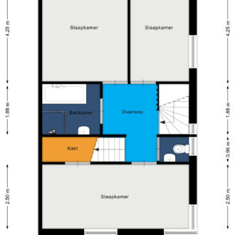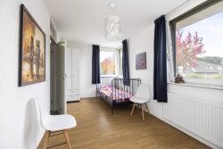 Op de tweede verdieping bevindt zich een ruime overloop met de wasmachineaansluiting en de cv-installatie. Daarnaast biedt deze verdieping diverse praktische bergruimtes en een royale vierde werk-/slaapkamer, die zich uitstekend leent als thuiskantoor, hobbyruimte of logeerkamer.