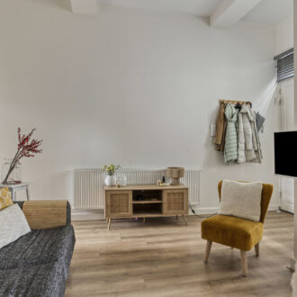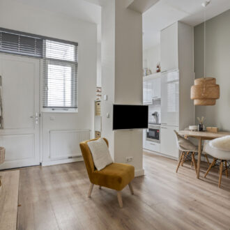 Op een centrale locatie is in 2021 dit transformatieproject gerealiseerd. Het betreft een subliem afgewerkte en energiezuinige (label A) benedenwoning van circa 40 m² woonoppervlak, voorzien van een sfeervolle living met hoog plafond, luxe open keuken, één slaapkamer, moderne badkamer en een achtertuin.