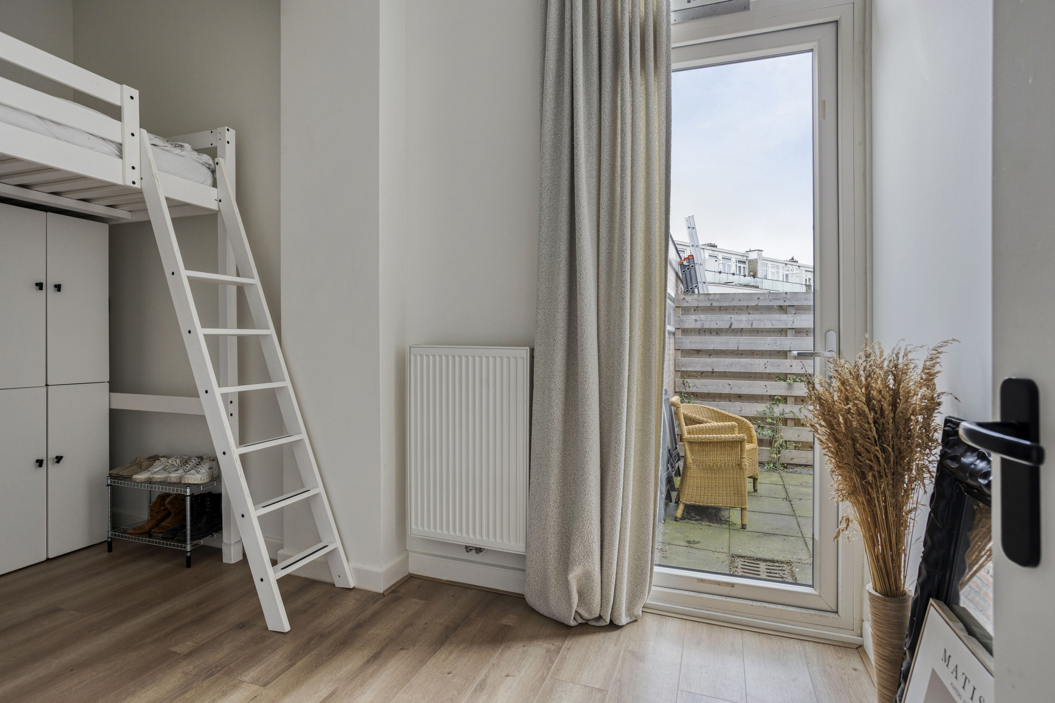 Vanuit de slaapkamer is er toegang tot de achtertuin, gunstig gelegen voor de ochtend- en middagzon.